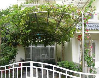 一个花架通常配置一种攀援植物,也可以配置两到三种可以相互补充。各种攀援植物的观赏价值和生长要求不尽相同,设计花架前要有所了解。