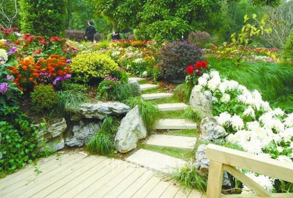 地平面:以不同高度不同种类的地被和矮灌木来暗示空间。如:草坪和地被之间的交界虽然没有植物实体对视线的屏障作用,但却有空间范围的暗示作用。